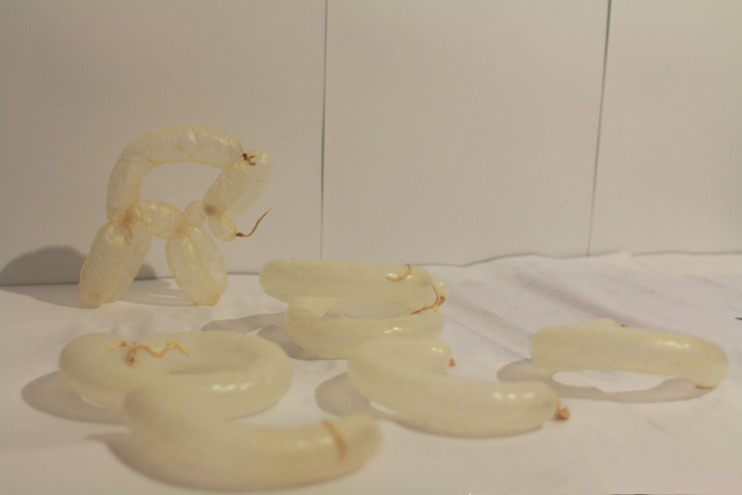 Świadomość, że tłoczenie powietrza w jelita wymagało przyłożenia do nich ust, budzi w nas awersję. Jednak kategoryczność tych emocji zostaje w tej pracy podana w wątpliwość dzięki nawiązaniu do uwielbianej przez dzieci zabawki: podłużnych balonów, z których – gdy w odpowiedni sposób je przewiązać i złożyć – można uzyskać kształty zwierząt lub prostych przedmiotów.