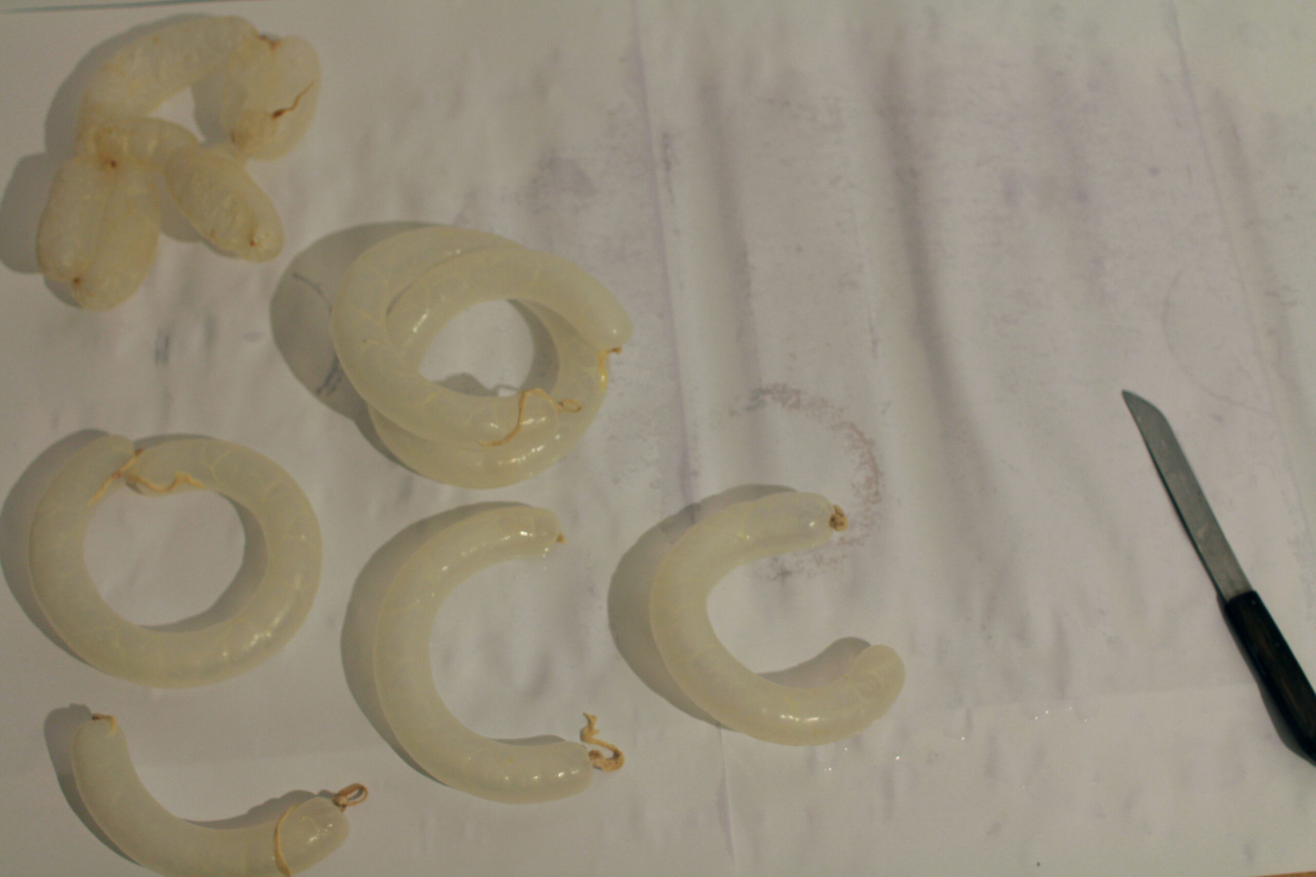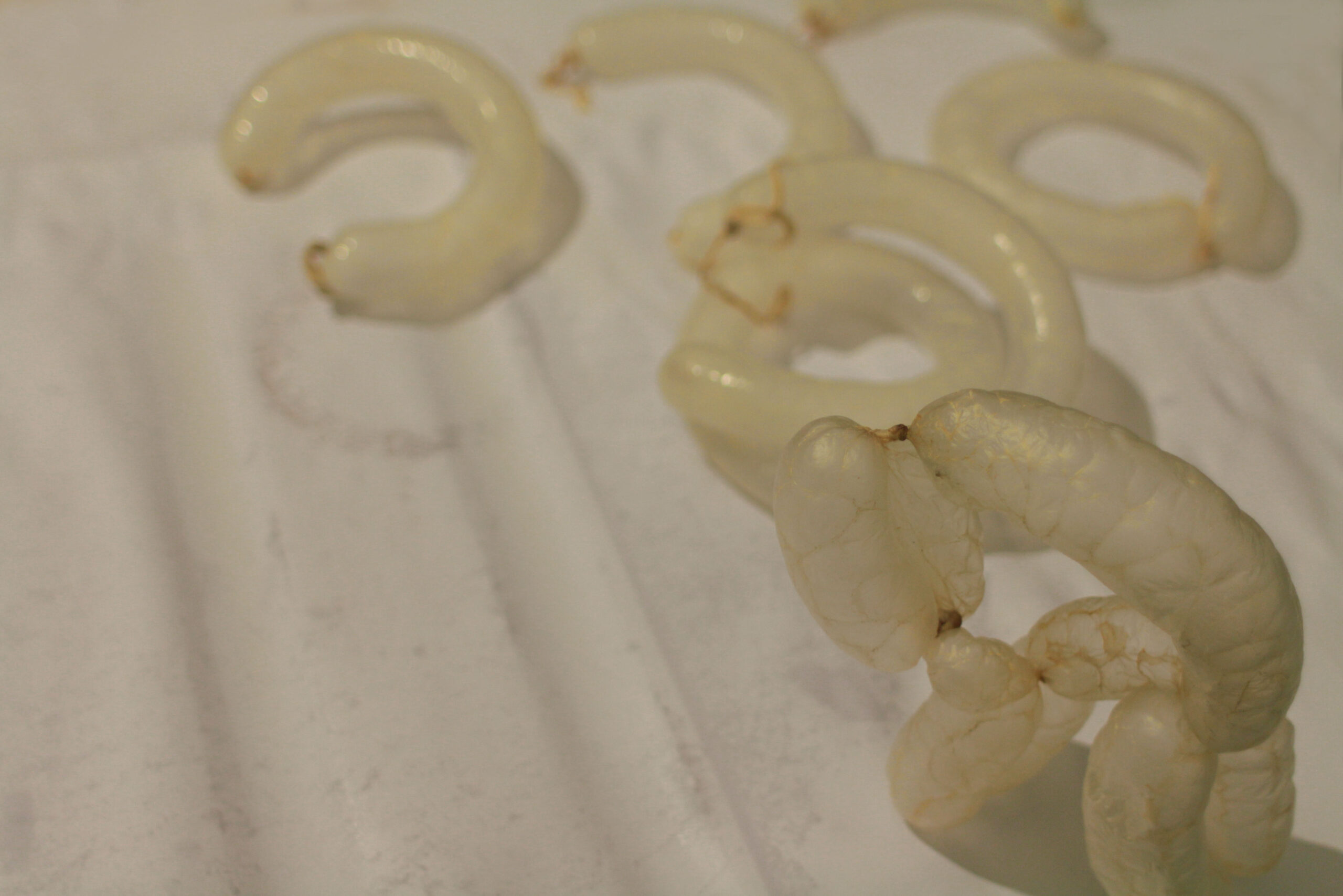 2014 | obiekty z jelit | tryptyk fotograficzny 87 x 58 cm | video Full HD, 1`43„| sound, loop
