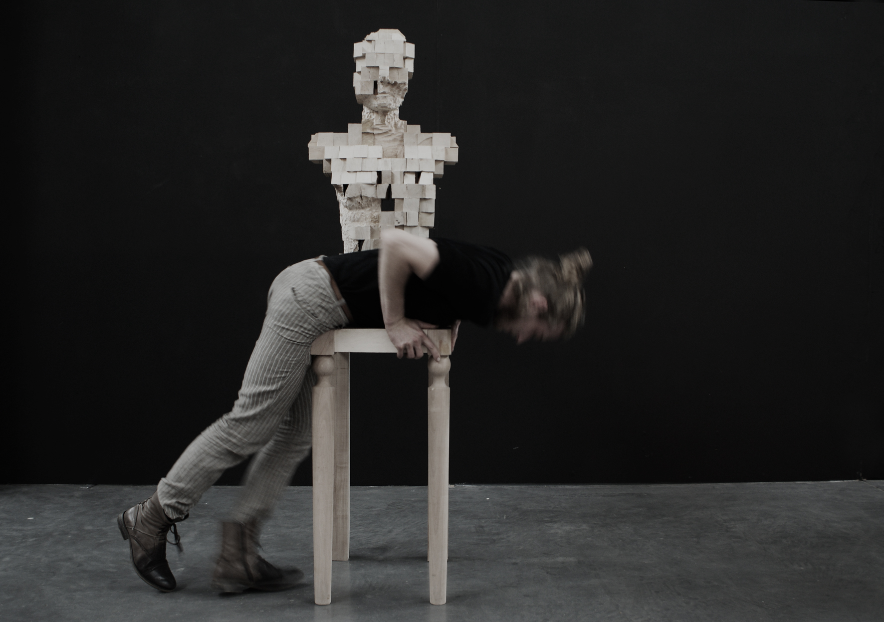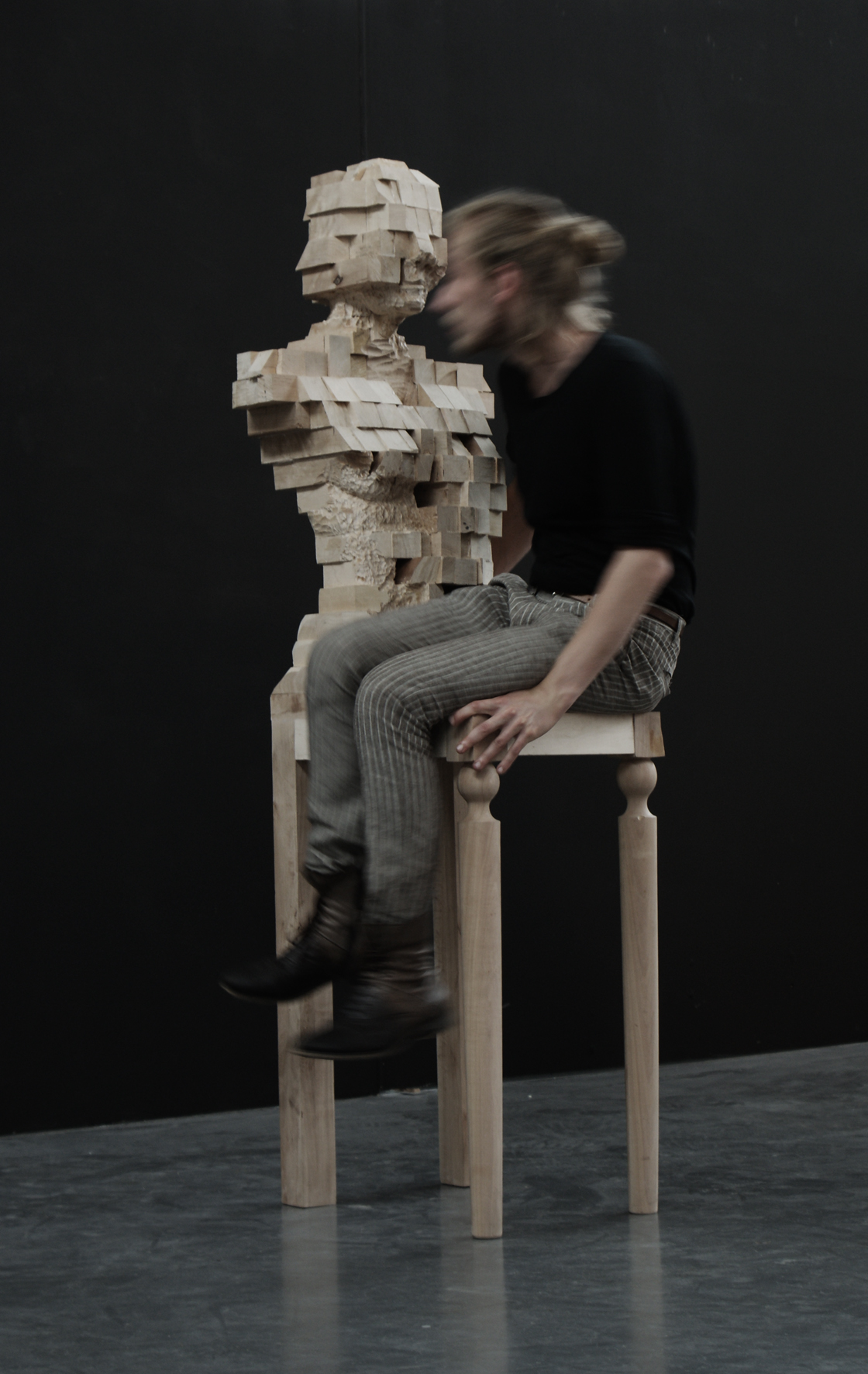 Założeniem pracy jest integracja zjawisk rzeźby oraz meblarstwa. W realizacji kluczowe jest eksperymentowanie z materią mebla w kontekście rzeźby. Celem było stworzenie obiektu, którego nie da się jednoznacznie scharakteryzować jako krzesło czy mebel o walorach funkcjonalnych. Założeniem było zawieszenie obiektu pomiędzy możliwościami użytkowymi a nieużytkowymi.